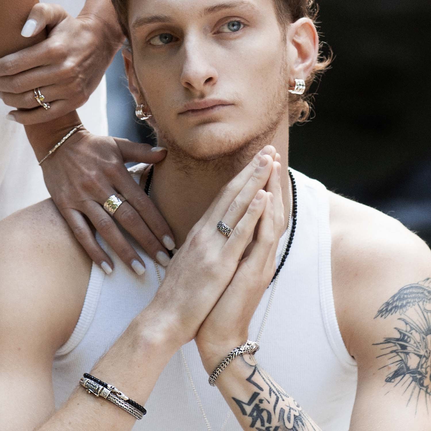 As an artistic and sustainable choice, the jewellery is not surface-plated but kept in its natural state. This preserves the natural look of the silver and ensures longer durability, as well as easier maintenance. Any scratches can be more easily smoothed, without the need to restore an outer layer. Silver tends to last unchanged over time, and although it may oxidise when exposed to air, a simple polishing can restore its original appearance.