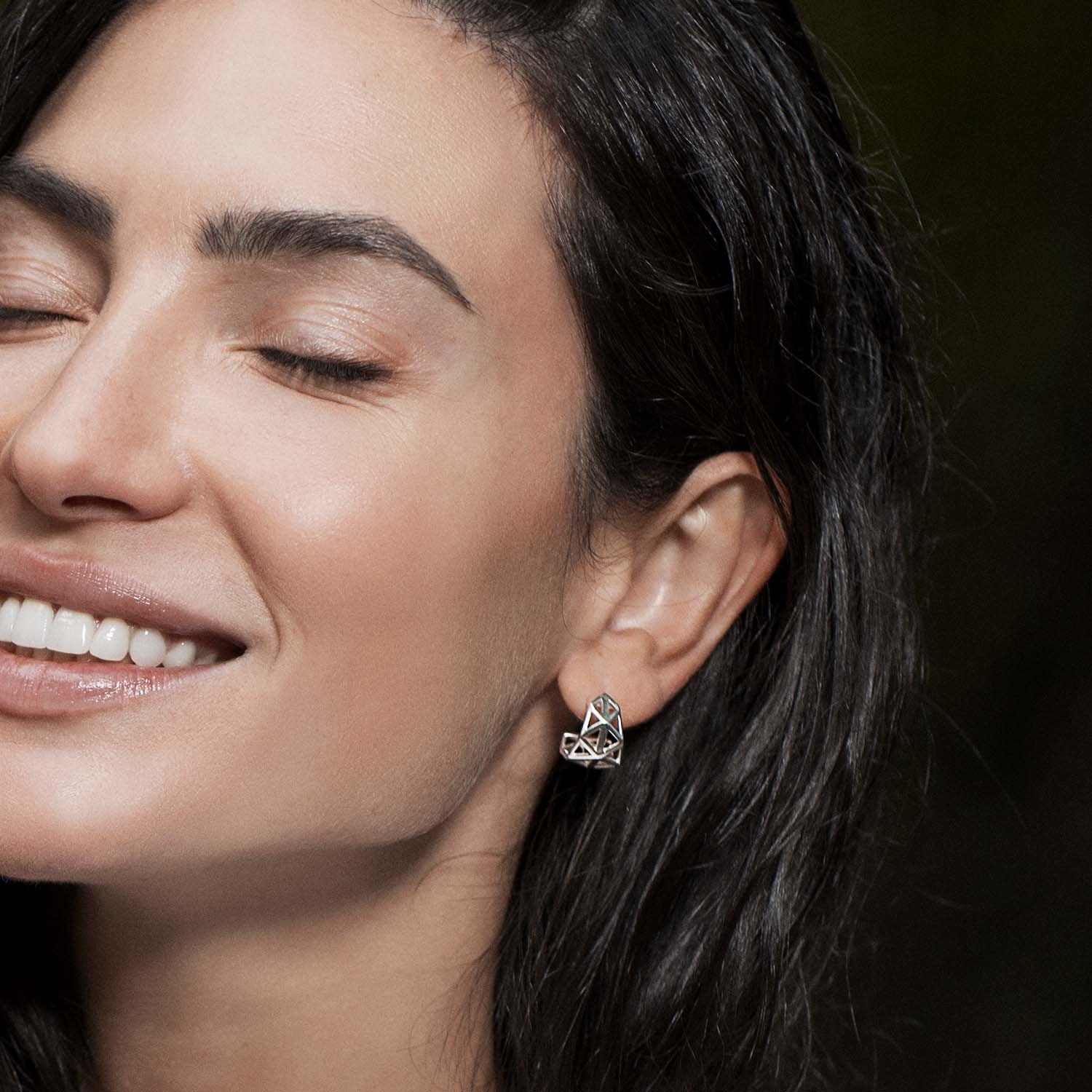 The “Yantra” ear cuff is a dainty, lightweight adornment meticulously crafted from sterling silver, artfully inspired by the geometry of a leaf. A central ridge elegantly divides lateral veining, symmetrically reflecting the perfection of nature.
